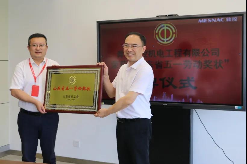 7月9日,膠州市總工會(huì)主席姜鵬、副主席孫衛(wèi)剛、生產(chǎn)部部長(zhǎng)胡強(qiáng)一行到膠州裝備產(chǎn)業(yè)園為青島軟控機(jī)電工程有限公司榮獲2021年“山東省五一勞動(dòng)獎(jiǎng)狀”進(jìn)行授牌。軟控黨委書(shū)記、副總裁魯麗娜代表公司對(duì)領(lǐng)導(dǎo)們的到來(lái)表示了熱烈的歡迎和衷心的感謝;軟控機(jī)電公司總經(jīng)理武守濤代表公司接受授牌。