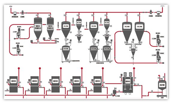 原料輸送:可實現大批量、遠距離、高效率輸送;快速準確的取料并輸送到指定位置;管道封閉輸送有效避免污染。